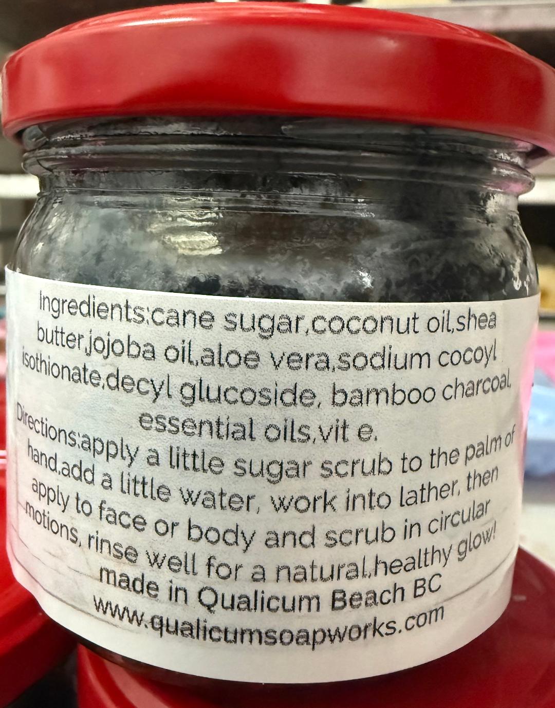 Sweet Cheeks moisturizing cleansing scrub for face & body with coconut oil,shea butter, jojoba oil, bamboo charcoal,tea tree oil, Vit e with a mild cleansing base. Natural rich moisturizing glowing skin!